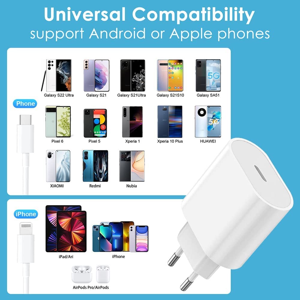 Cargador 20w Para Xiaomi Realme Samsung Iphone Oppo Vivo Pixel honor Usb-C Tipo C Ultra Rapido Cable 1M