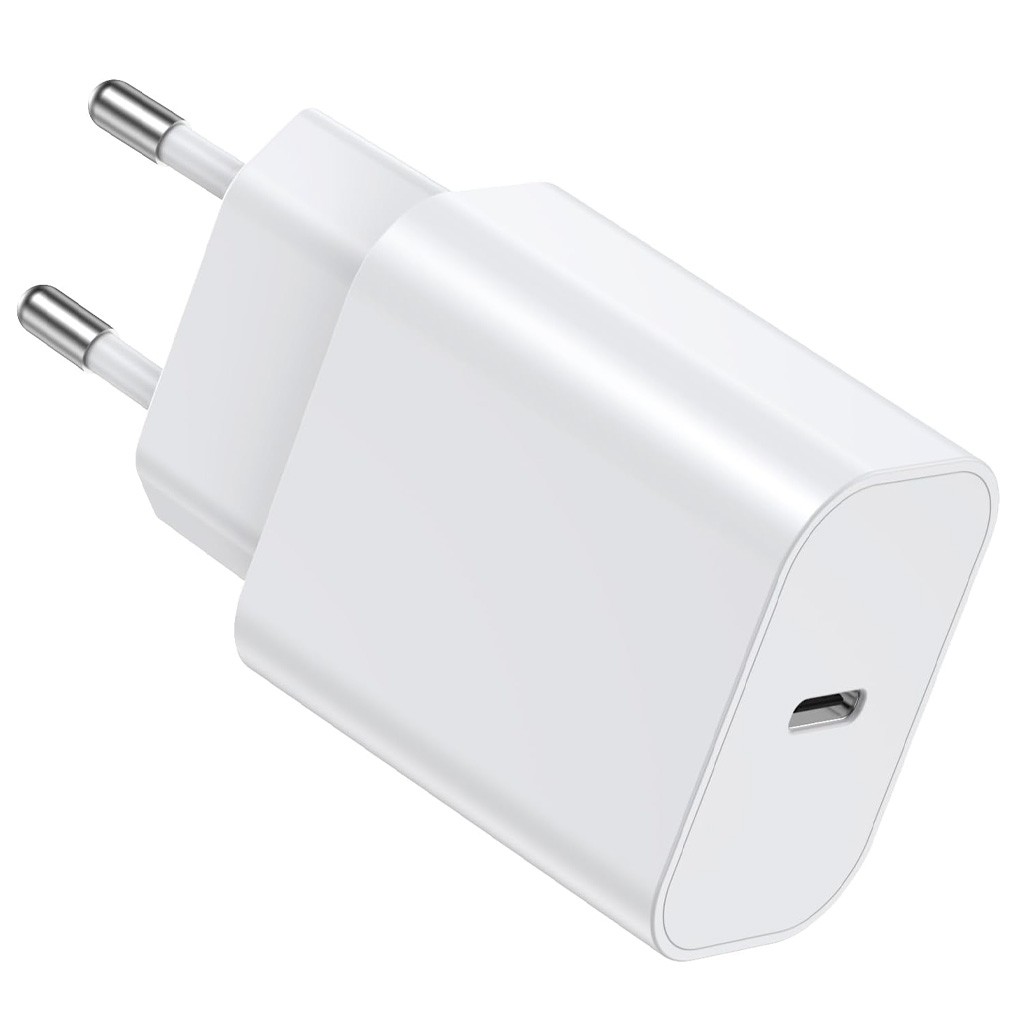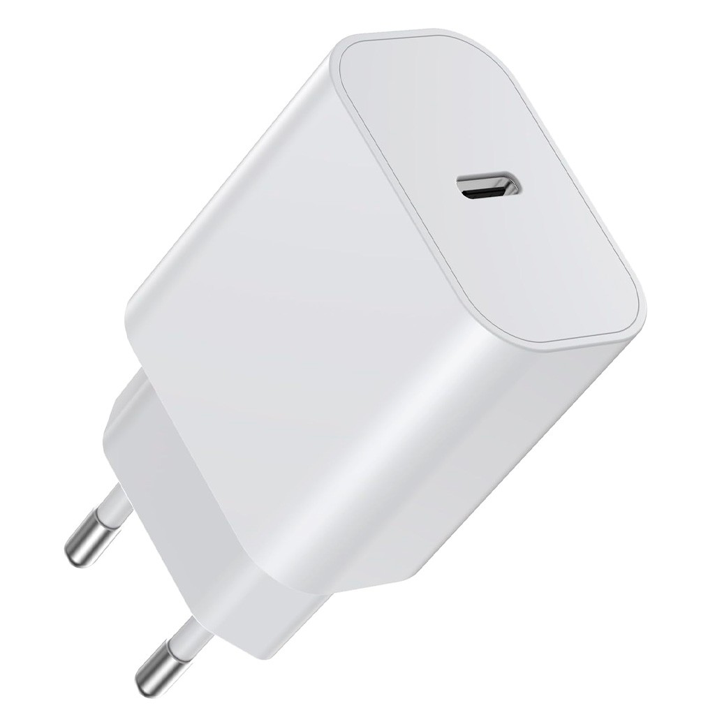 - Cargador USB-C de 20W con tecnología Power Delivery (PD 3A) que ofrece carga ultra rápida y eficiente para smartphones y dispositivos compatibles.