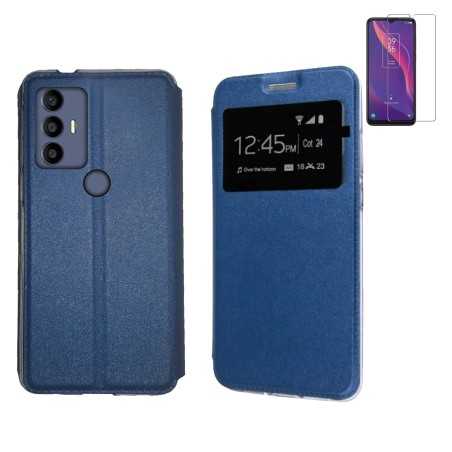 Protege tu TCL 306 con estilo: Funda Libro con Ventana Azul + Protector de Pantalla