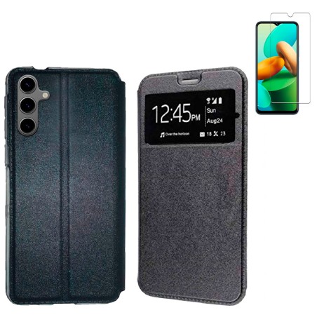 Funda Samsung Galaxy A17 5G (6.7) Negro Libro Ventana + Protector de Pantalla Cristal templado 9H
