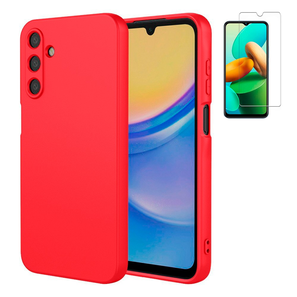 Funda Samsung Galaxy A17 5G (6.7) Rojo Tpu Lisa Silicona Gel Premium + Protector de Pantalla Cristal Templado 9H