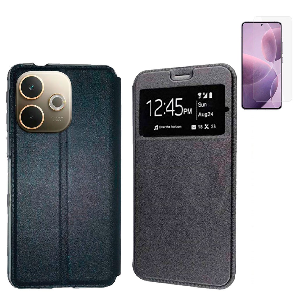 Funda Oppo A5 Pro 4G - 5G (6.7) Negro Tpu Libro Ventana + Protector de Pantalla Cristal templado 9H