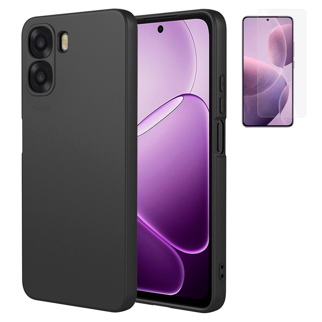Funda Oppo A6X Negro Tpu Lisa Silicona Gel + Protector de Pantalla Cristal Templado 9H