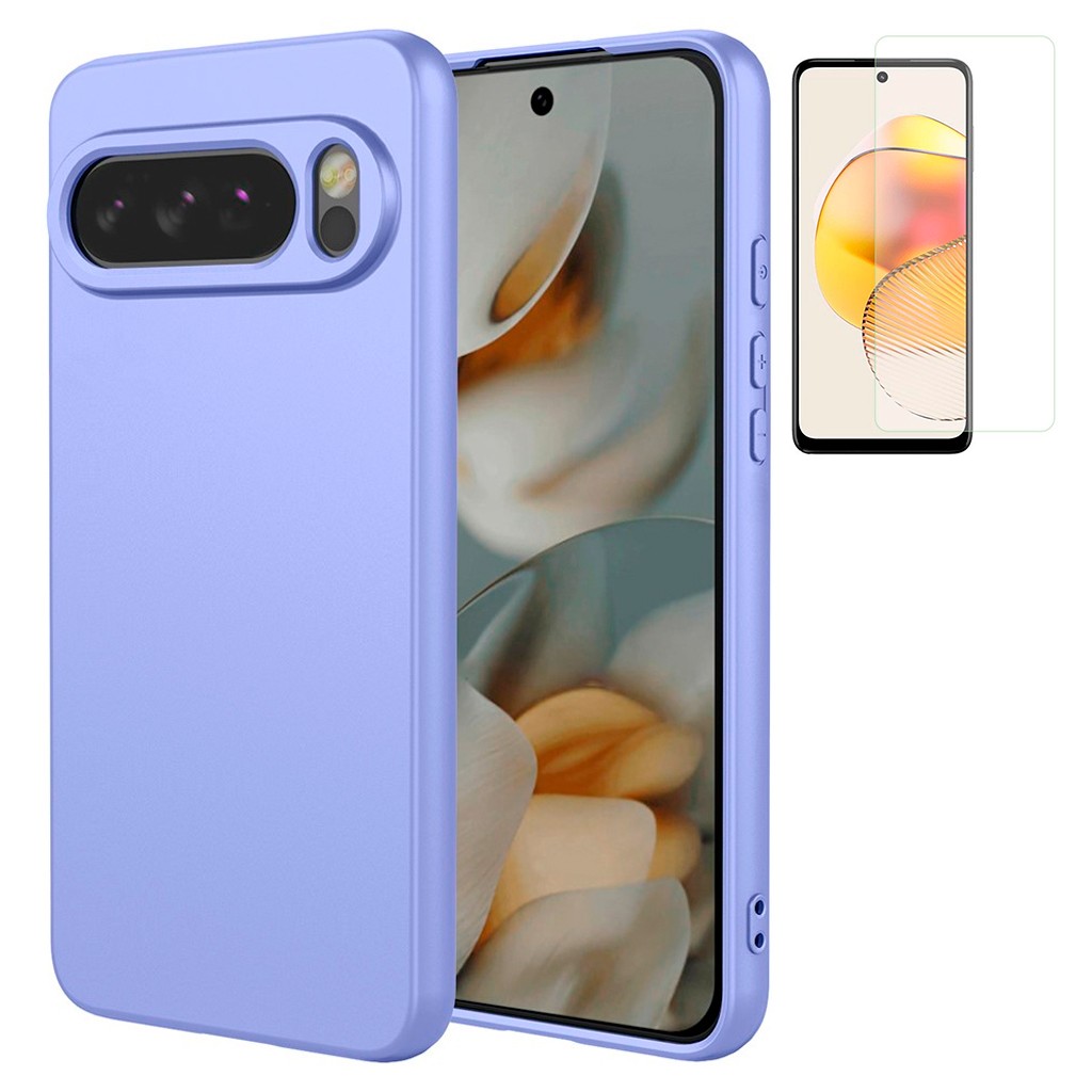 Funda Google Pixel 10 - 10 Pro 5G (6.3) Morado Tpu Lisa Silicona Gel Premium + Protector de Pantalla Cristal Templado 9H