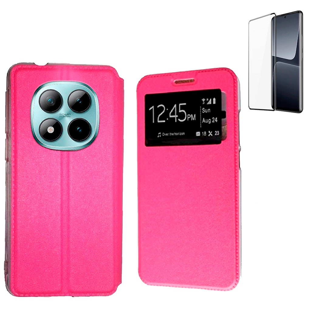 Funda Xiaomi Redmi Note 15 5G (6.77) Rosa Libro Ventana + Protector 3D Curvado